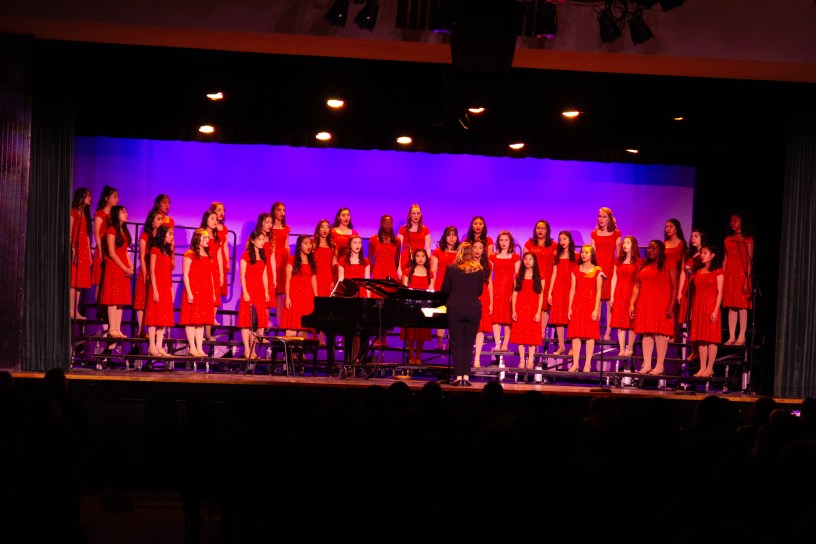 The concert included performances from all choir groups, including the Honors choir, Here Comes Treble, G-Notes, Women’s Concert, Happily Ever After, Once Upon a Time, Acafellas, and Syncopella. Each group performed three to four songs, some of which were new and unexpected.