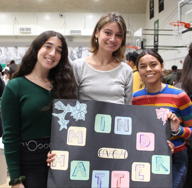 Seniors Claudia Cubillos, Venia Ghazarian, and Katie Solares created the “Mind Over Matter” club this year with the main focus on helping promote mental health awareness and emotional well-being on campus.