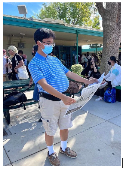 DAY FOUR–BBQ DAD VS. SOCCER MOM: The student pictured above is dressed as a BBQ dad reading the Plaid Press’ recent newspaper.