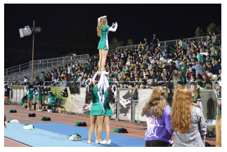 CHEER CAPTURES THE MOMENT: The varsity cheer team brought their most inspiring cheers to get the audience and team hyped to win the game. Here they are seen working as a team to get a good picture of the enlivened crowd.DANCE TEAM: During the halftime show the dance team showed that they are filled with excitement and skillful moves that had the crowd up and on their feet.