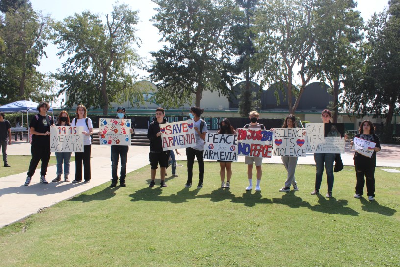 Seniors Arineh Khachikian and Daniel Maadanian, and others organized the protest to bring awareness of the crisis to both the student body and the larger San Fernando Valley area about the current crisis.