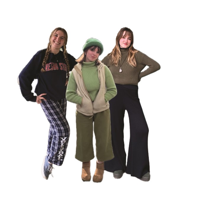 Moving away from the comfy side of our winter fashion, sweaters pair well with both comfy and stylish fashion. Students have been wearing very fashionable sweaters recently with the temperature dropping. Celebrities like Emma Chamberlain have made this a winter staple whether in the form of a big sweater or a small sweater vest. Many choose to wear their favorite “grandpa sweater” which serves the purpose of both warmth and looking good with a pair of jeans or maybe even some cargo pants.