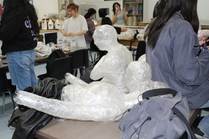 “The thing that I love about this art project is that we have been able to create molds of our own bodies,” senior Tala Ahmadie said. “We feel really attached to the piece because it is so personal to each of us. The whole process has been super fun. My friends have wrapped me and I’ve wrapped them and it’s made us feel closer to each other. Mrs. Thomas especially has been very helpful and supportive of our ideas. She’s the best art teacher ever. I haven’t had an art class since eighth grade and the fact that she puts so much work into organizing these projects for us has made me excited about art again.”