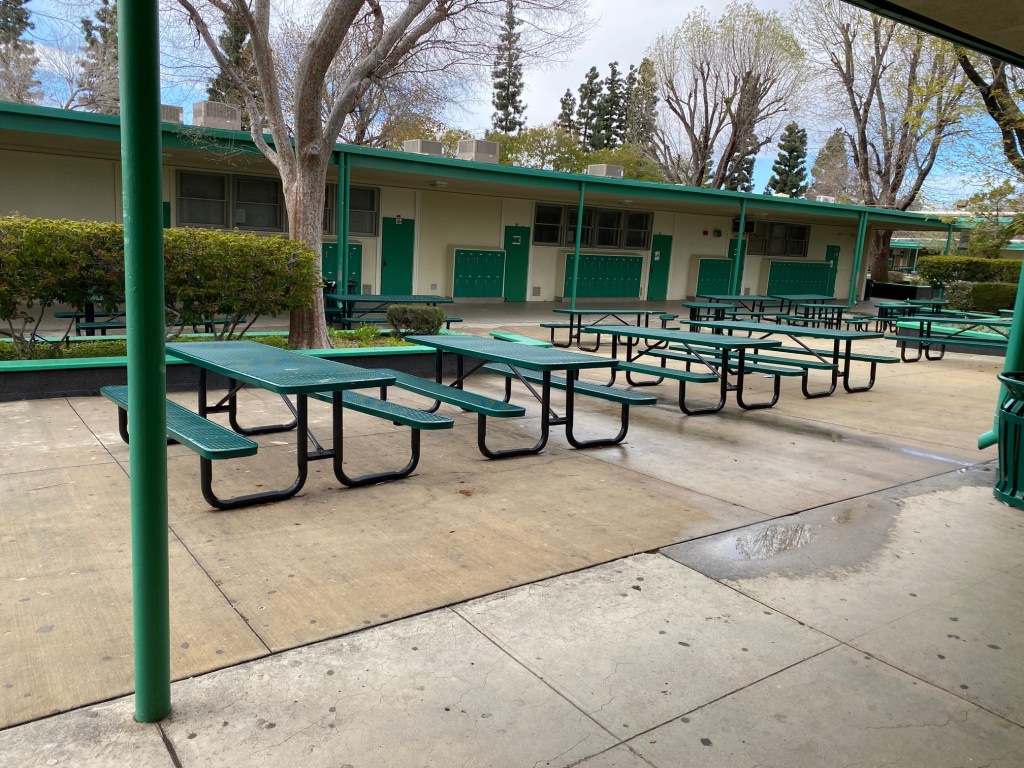 While the school offers some gap period activities and indoor locations for students to wait, most students find themselves sitting outside waiting for first period.