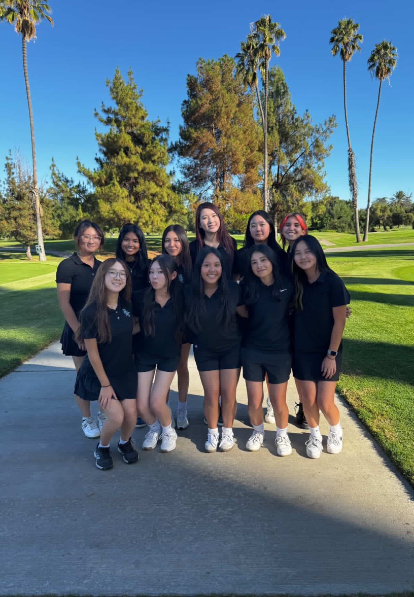 GOLF TEAM: The girls golf team poses for a photo at the Lake Balboa golf course. Photo courtesy of Coach Ma.