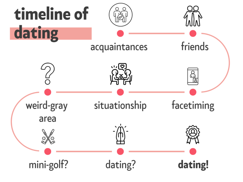 Today, even getting to an official relationship requires months of work. Though, a nifty chart may help one see the timeline to dating. (See the featured image)